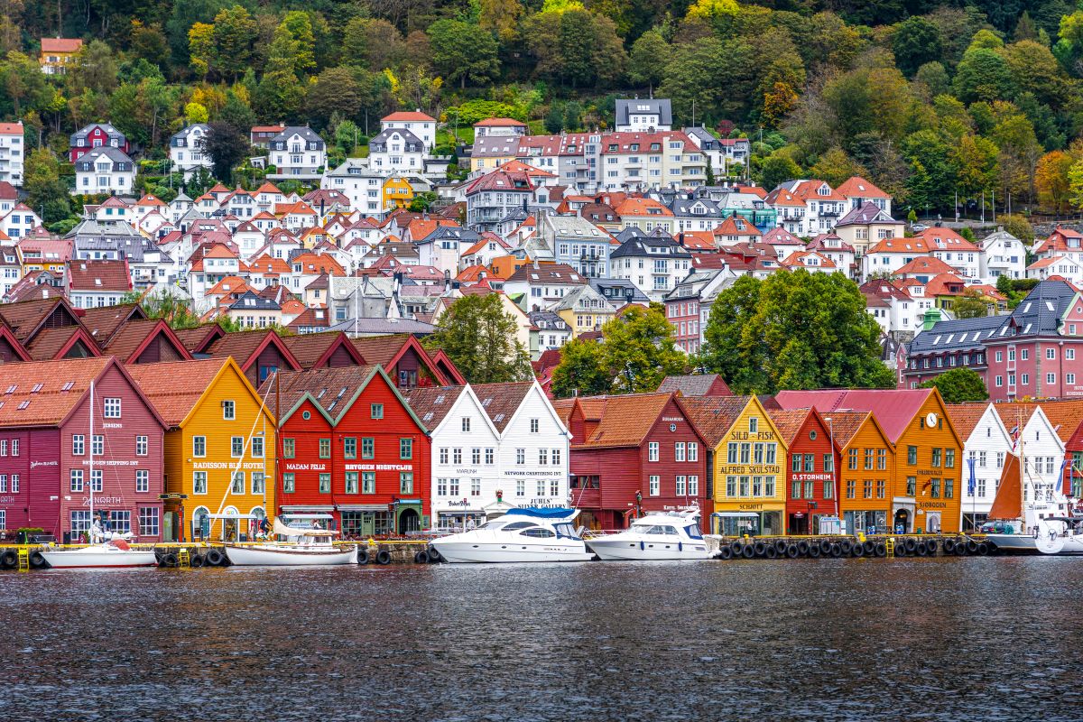 Adjø Wanderschuhe – jetzt werden sie wieder eingepackt. Aufregend bleibt es dennoch: In Flåm wartet der Zug nach Bergen. Knapp drei Stunden lang kleben wir am Fenster und tauchen noch einmal ein in die wilde Natur Norwegens. Es sei die schönste Strecke in Europa, sagt der Zugbegleiter unbescheiden, als er uns in der Hansestadt Bergen an der Westküste verabschiedet. Beim Schlendern durch die Altstadt verlieben wir uns in die bunten Holzhäuser und schmalen Gassen. Und auf dem Aussichtspunkt Fløyen, hoch über der Stadt, in die sieben Berge, die dem historischen Küstenort den Namen gaben. Hätte es einen besseren Schlusspunkt für diese Wanderreise geben können?