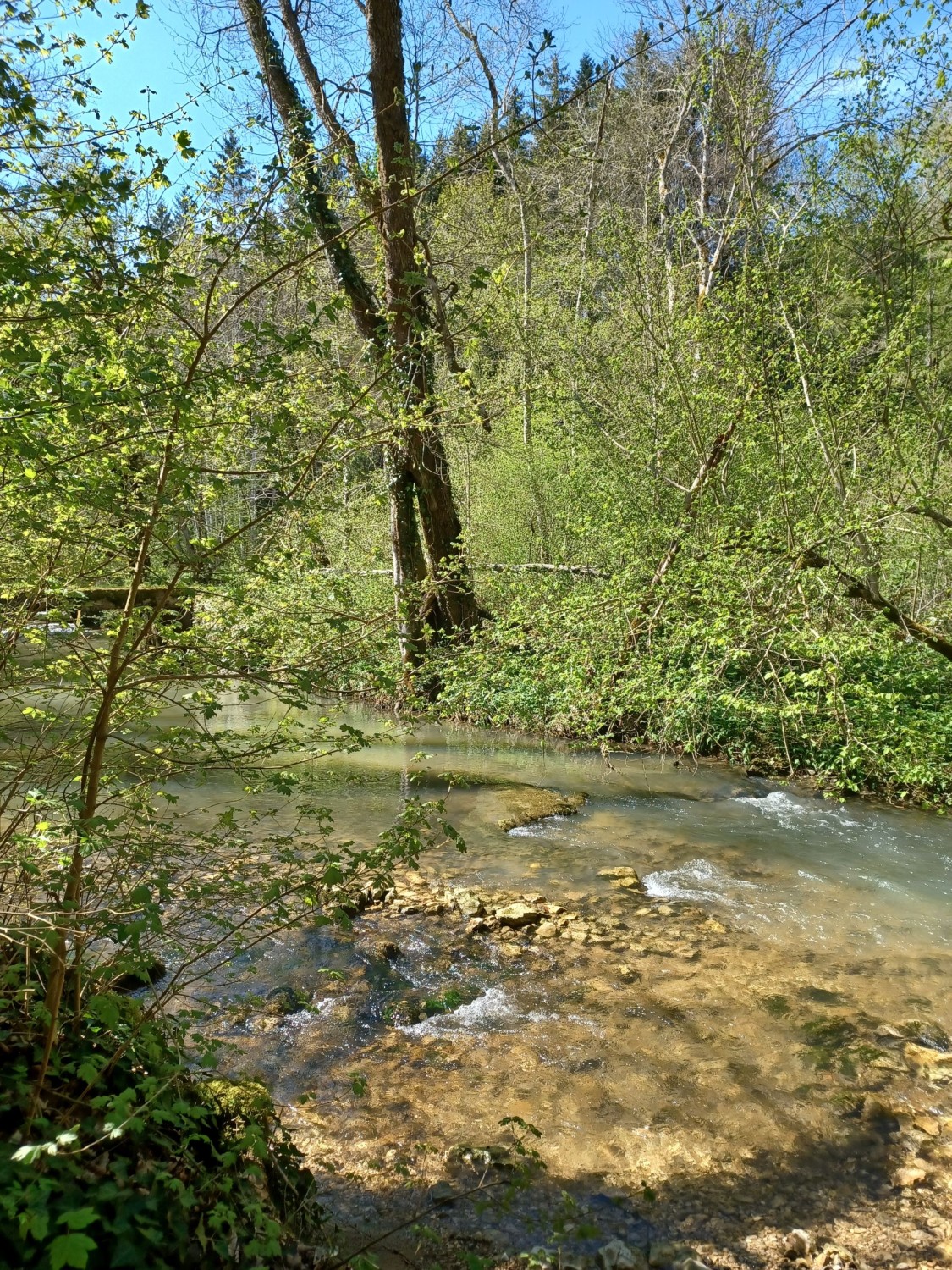 talabwärts durch das bewaldete Tal. Der Wanderweg verläuft