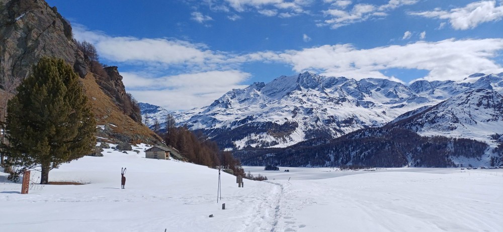 Wo kann eine Schneeschuhtour schon direkt an einem Seeufer beginnen? Am idyllischen Silsersee startet unsere heutige Wanderung. Gemächlich geht es auf der Sonnenseite des Sees hinauf zum Plateau von Grevasalvas, dem Drehort der Heidi-Serie von 1978. Bei guten Bedingungen steigen wir zur Alp Mouttatsch auf und geniessen die Mittagspause mit einem umwerfenden Panorama über das Oberengadiner Seen- und Bergland. Danach führt der Weg durch das malerische Maiensässdorf Blaunca und über Buaira zurück nach Plaun da Lej.