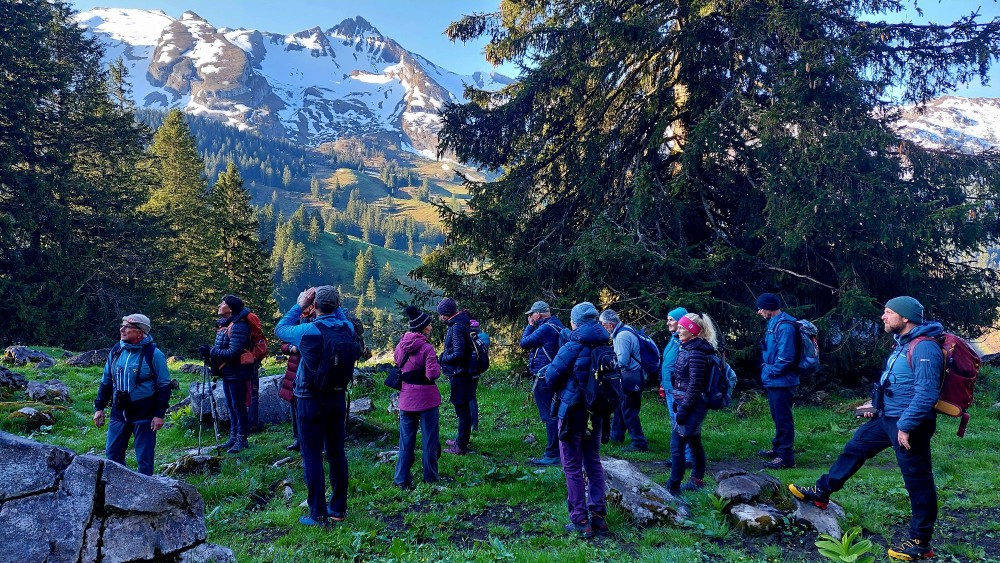 Der Bergfrühling erwacht. Früh am Morgen, wenn es noch Nacht ist, erwachen die Bergvögel auf den Alpweiden und im Bergwald. Wir bleiben immer wieder stehen, lauschen den Tönen und beobachten mit dem Fernglas ihr Balzgehabe. Später, wenn wir den Kuckuck gehört oder sogar gesehen haben, steigen wir auf die Unter Musenalp, wo es im Kälteloch bestimmt noch Schnee hat. Weiter oben staunen wir, dass die Rauwacke statt in der Tiefe oben auf liegt. Auf dem Gipfel ziehen gegen Mittag möglicherweise Gänsegeier mit bis zu 2.8m Flügelspannweite auf. Auf dem Abstieg besuchen wir die älteste Nidwaldner Alphütte (1671) auf dem Morschfeld.