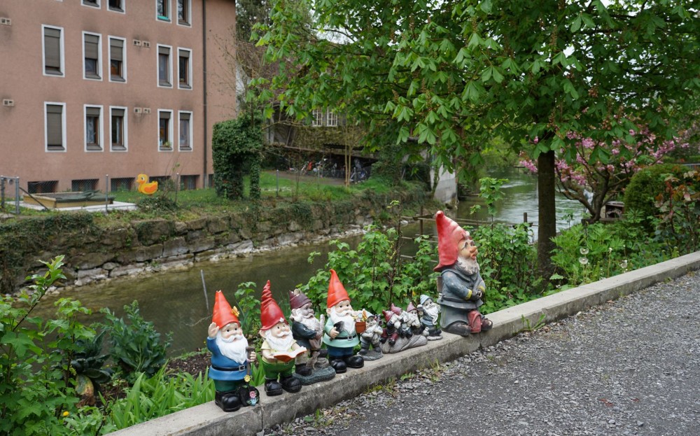• In Cham grüssen Gartenzwerge die Wandernden auf dem Industriepfad.
