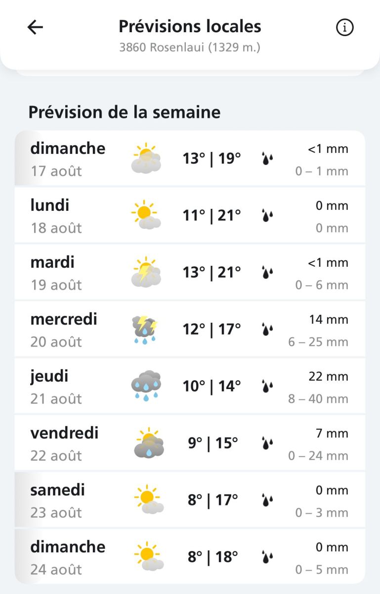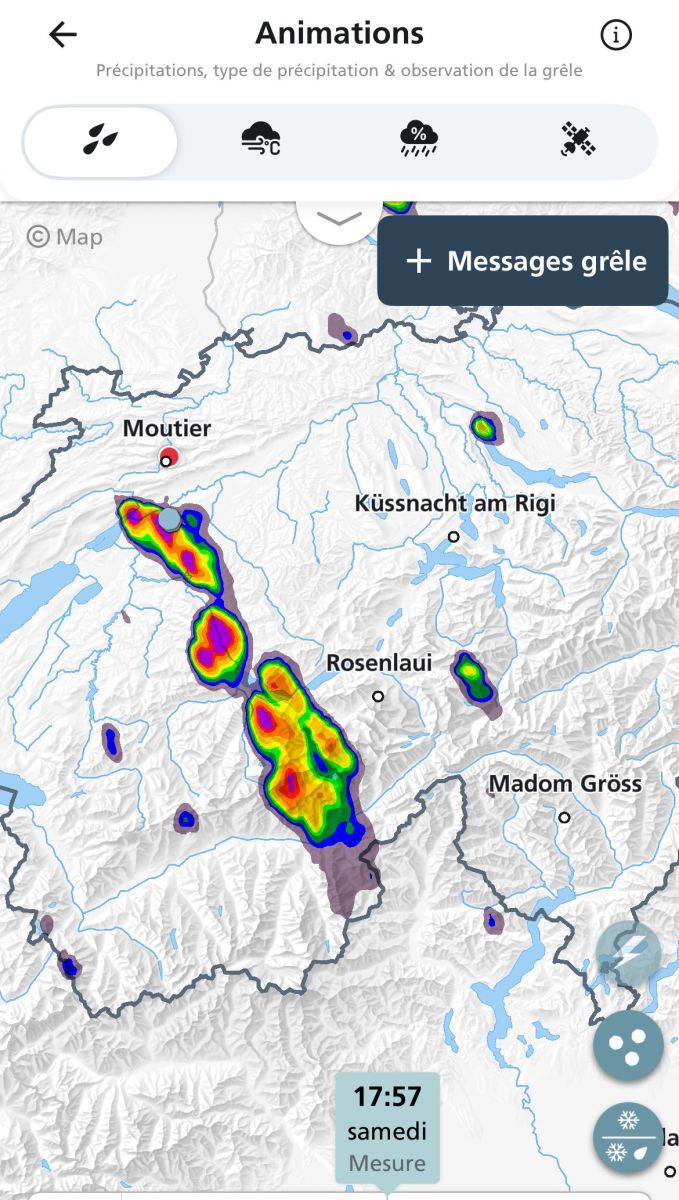 Heureusement, les outils modernes permettent souvent de passer entre les gouttes! Grâce aux applis météo (j’utilise surtout celle de MétéoSuisse), deux stratégies s’offrent à moi: