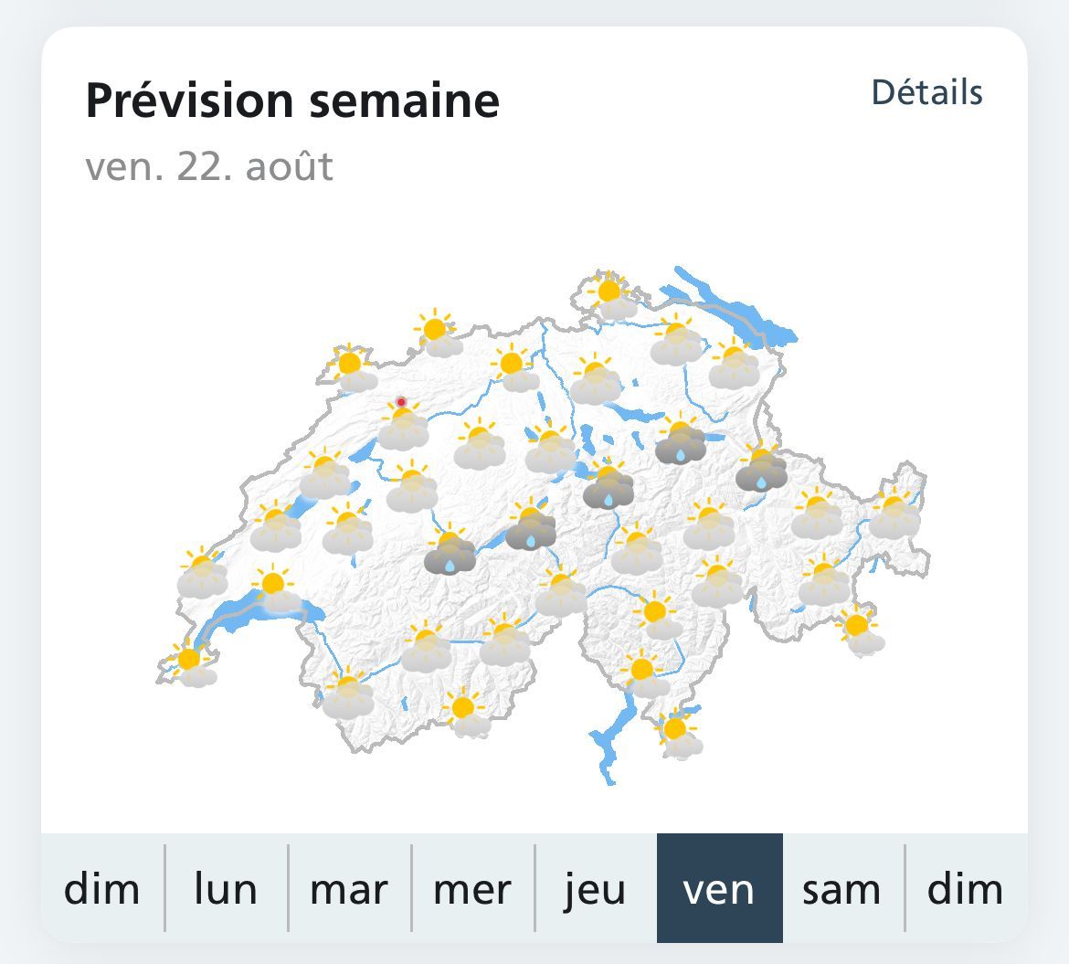- Pour une date précise → je regarde où en Suisse les conditions seront les meilleures.