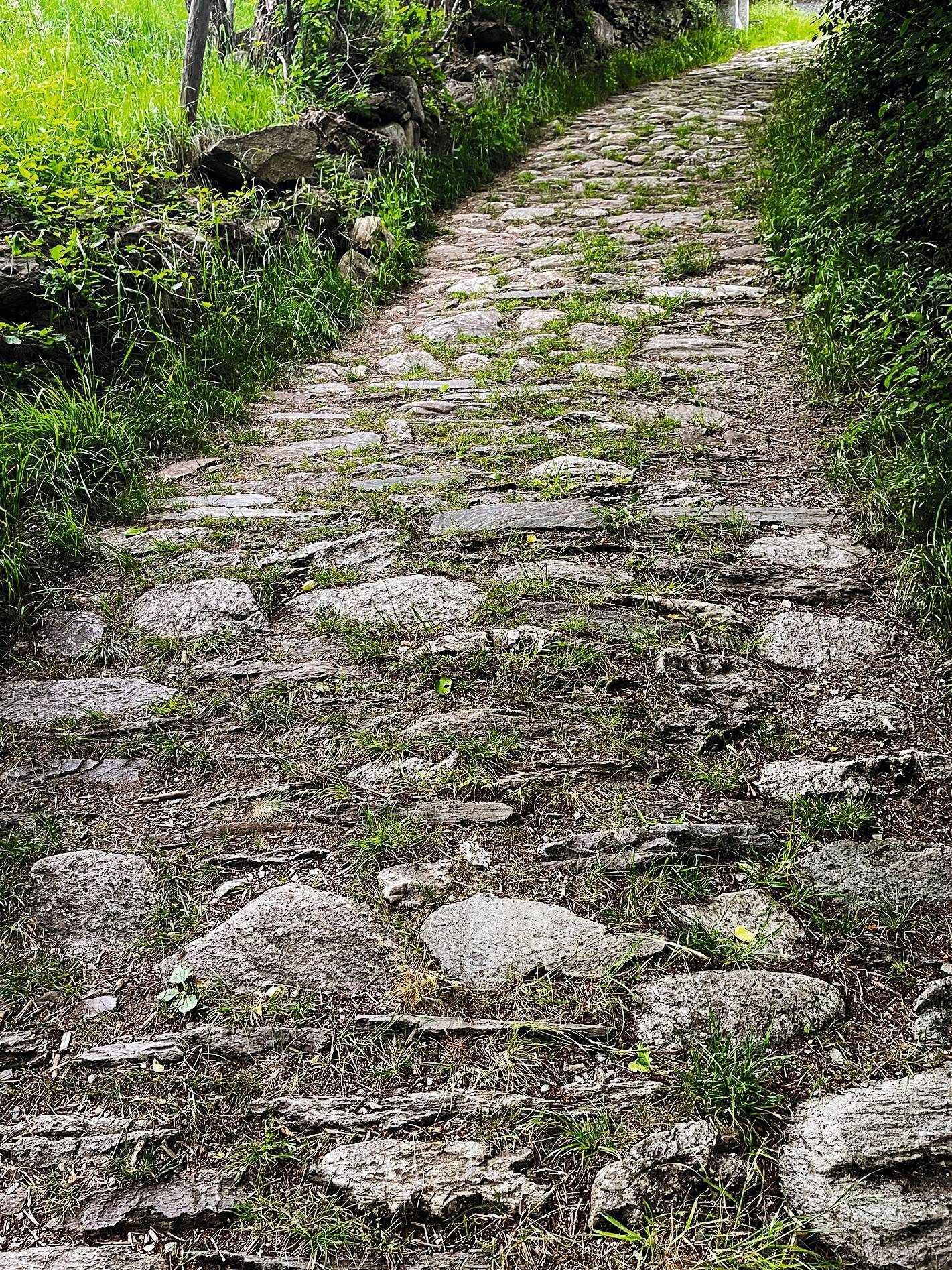 Pour le village d’Ausserberg, l’actuel chemin de randonnée vers Rarogne était synonyme d’ouverture vers le monde extérieur. En faisant preuve d’attention, on constate que le chemin, peu après St. German, est pavé de pierres naturelles de différentes tailles qui offrent une stabilité pour la montée, courte mais raide. Edwin Pfaffen, l’historien du village, explique qu’en hiver, les paysans amenaient leur vin et leur marc de raisin de St. German à Ausserberg. L’imposant pressoir à vin est toujours installé au centre du village. Jusqu’à la création du chemin de fer du Lötschberg en 1913 et de la liaison routière vers Viège en 1963/64, on n’accédait à Ausserberg que par deux chemins muletiers. L’un menait à Viège où se tenait le marché, une ville où, après 1909, l’usine Lonza attira de plus en plus de travailleurs. L’autre chemin, vers Rarogne, servait à l’agriculture et menait à l’église, jusqu’à ce qu’une paroisse soit fondée à Ausserberg en 1867.