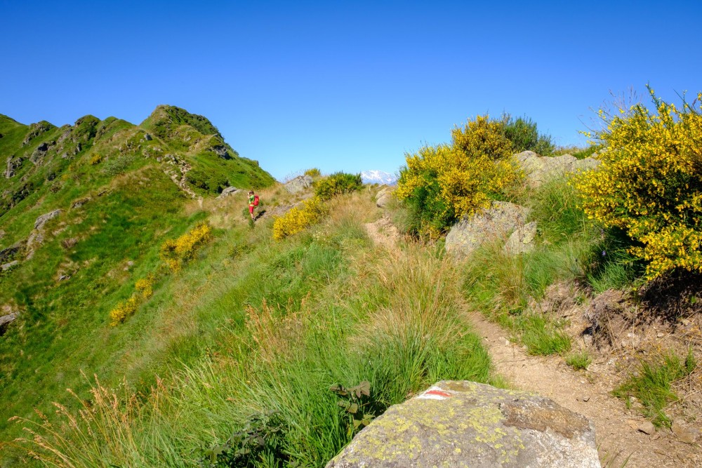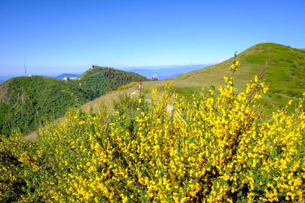 • Le Monte Lema apparaît tout à coup derrière des buissons de genêts en fleurs.