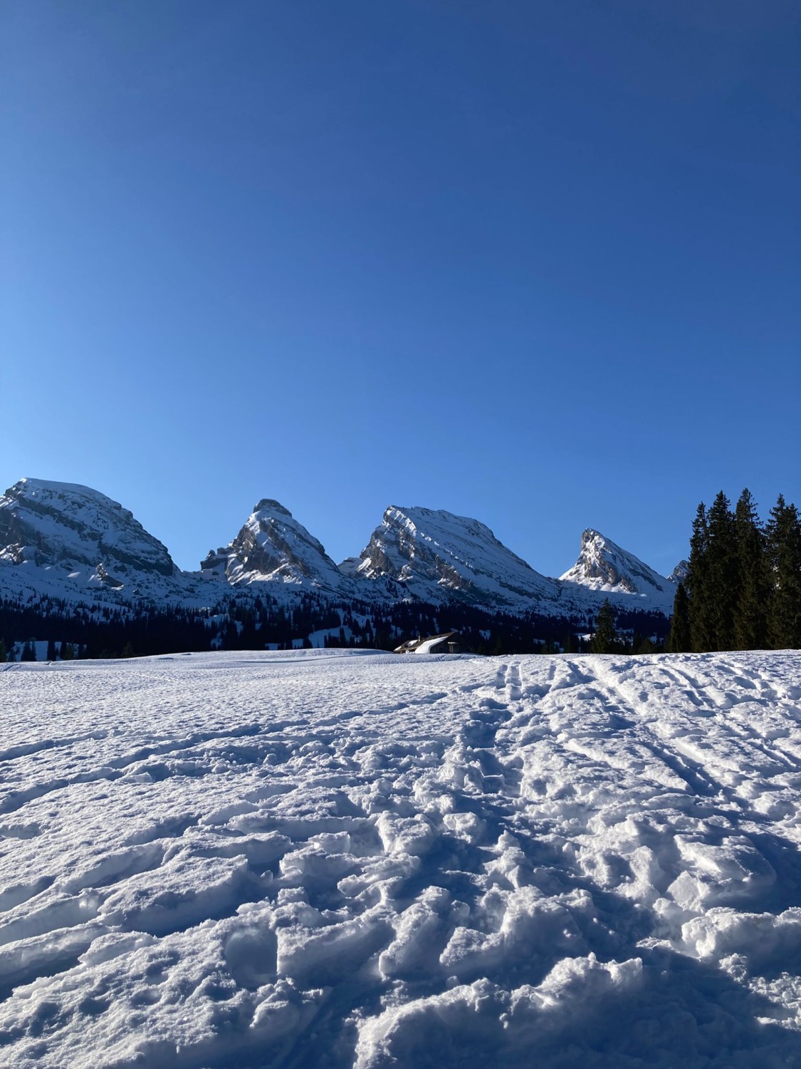 Schneeschuhe, Stöcke, Ersatz-T-Shirt, Verpflegung aus dem Rucksack, Thermosflasche mit warmem Tee wird empfohlen.