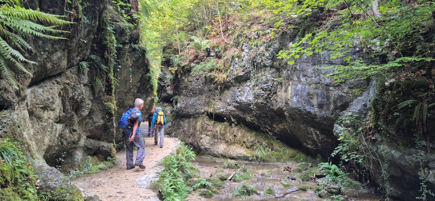 Tief ins Juragestein hat sich der Cholersbach in die Teufelsschlucht eingegraben. Im Schatten von Felsen und Wald steigen wir dem Bach entlang durch die wildromantische Schlucht. Der Weg führt über 30 Brücken mal links, mal rechts des Bachs entlang. Ist die Schlucht überwunden wandern wir auf einem Wiesenpfad hinauf nach Allerheiligenberg. Aber erst auf der Wuesthöchi haben wir den höchsten Punkt unserer Wanderung erreicht und die 633 Höhenmeter überwunden. Immer wieder belohnt uns jedoch die Aussicht über das Mittelland bis hin zu den Alpen für unsere Anstrengung. Über Schwengi steigen wir ab ins Baselland, nach Langenbruck