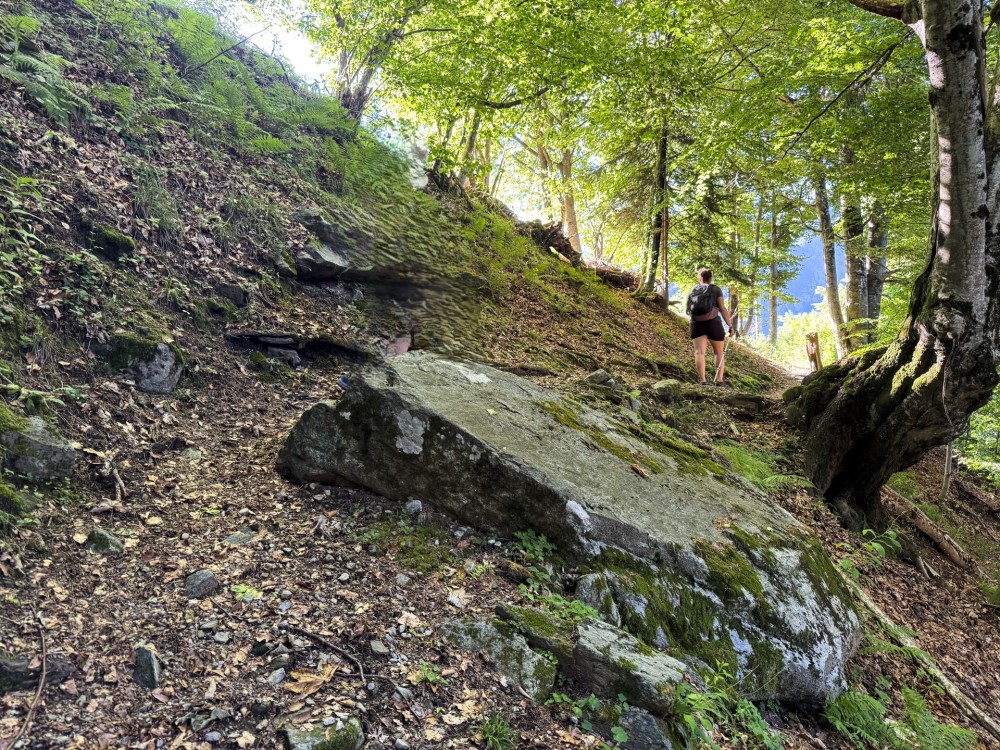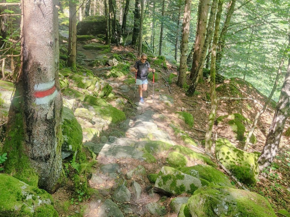 Rocce ricoperte di muschio ornano il sentiero.. Vignetta: Yolanda Loosli